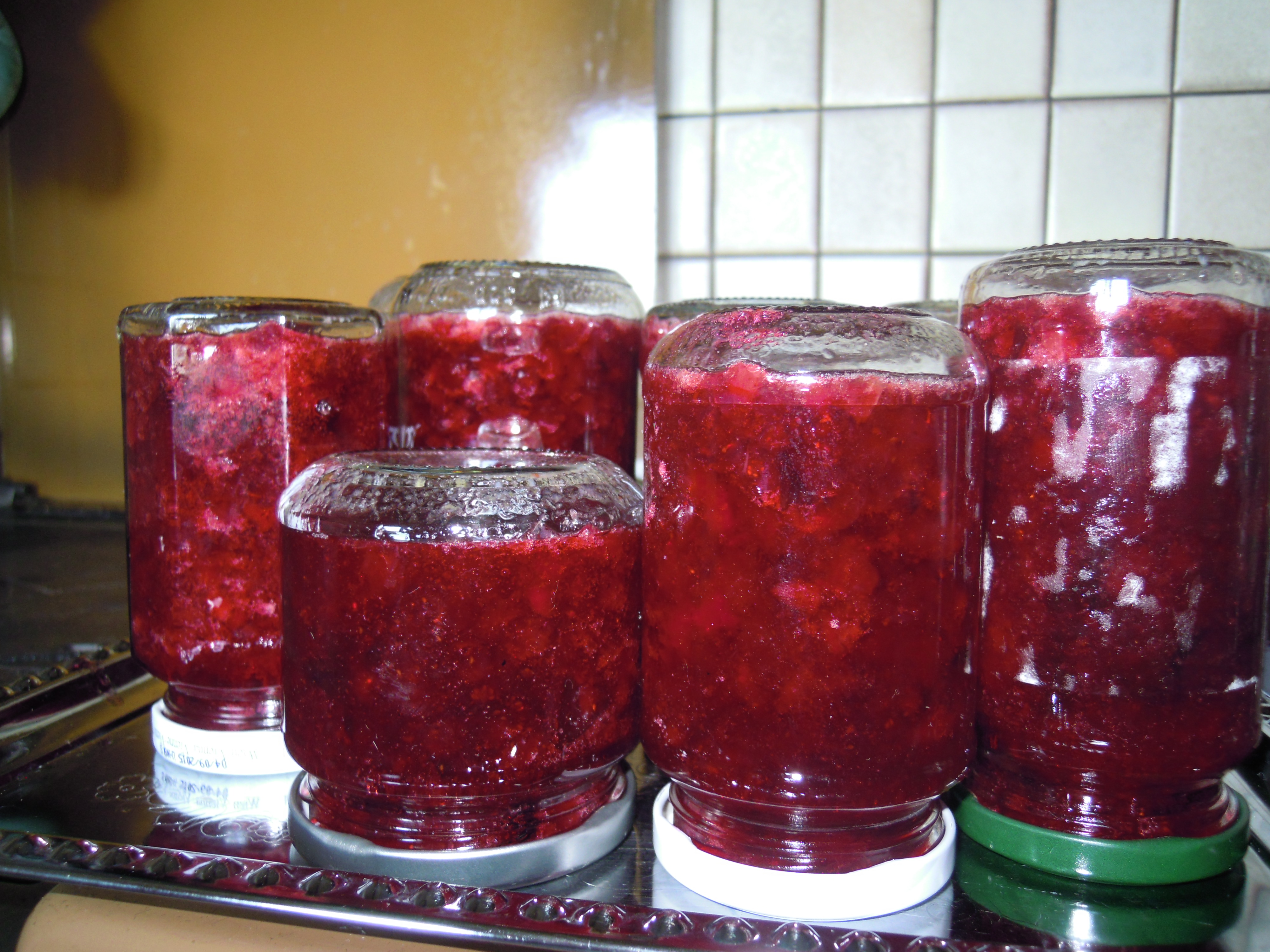 Das Kompott in die sauberen Gläser füllen, Deckel daraufschrauben und auf ein Geschirrtuch stürzen. Einen Tag lang stehen lassen und erst dann die Gläser umdrehen.
