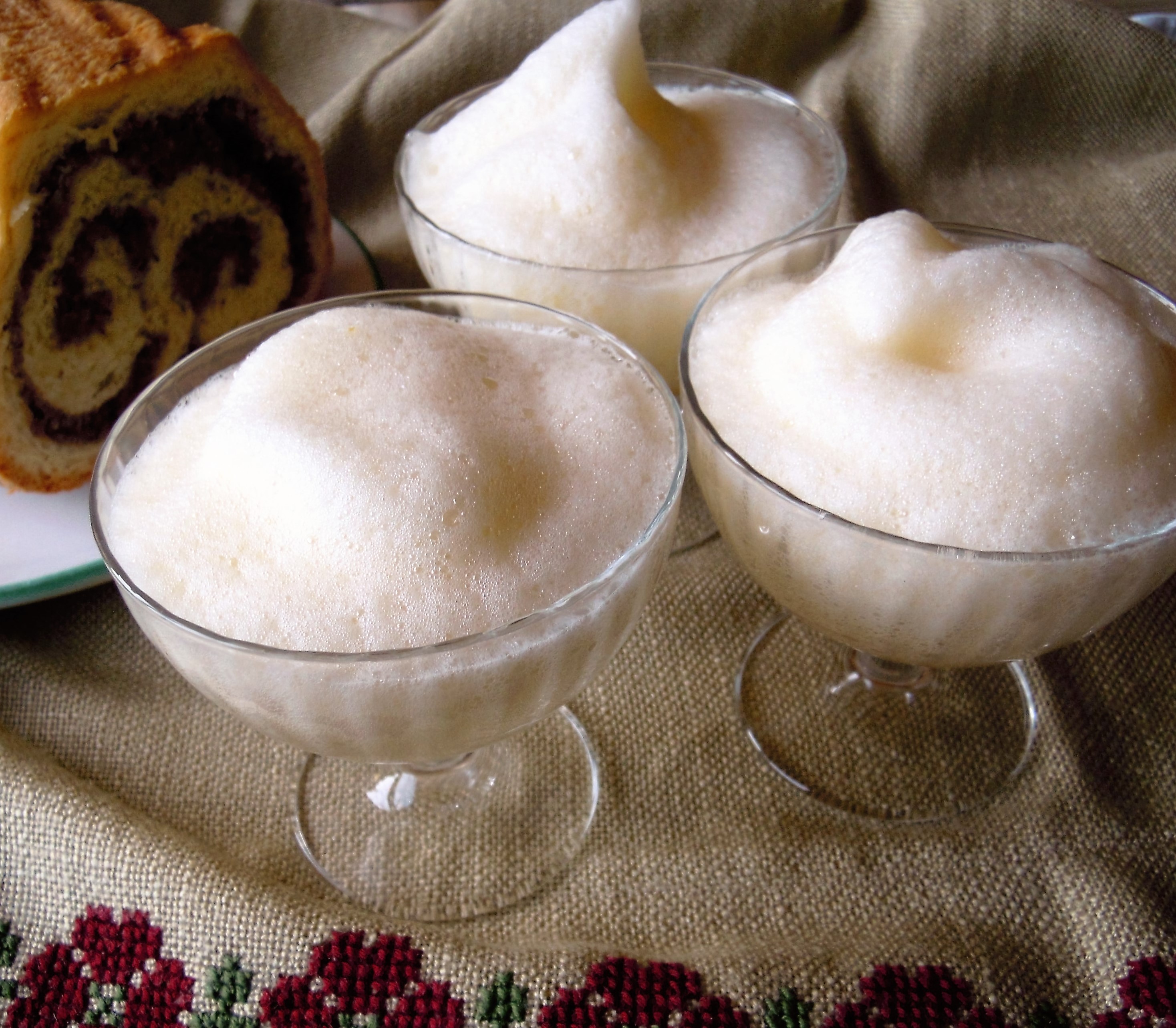 Dotter mit Zucker schaumig schlagen, gleichzeitig mit dem Most in die Schüssel geben und dann sehr kräftig schlagen. Die Masse geht dabei sehr stark auf. Wenn der Schaum feinporig und knapp vor dem Siedepunkt ist, rasch in Schüsserl füllen und heiß servieren.