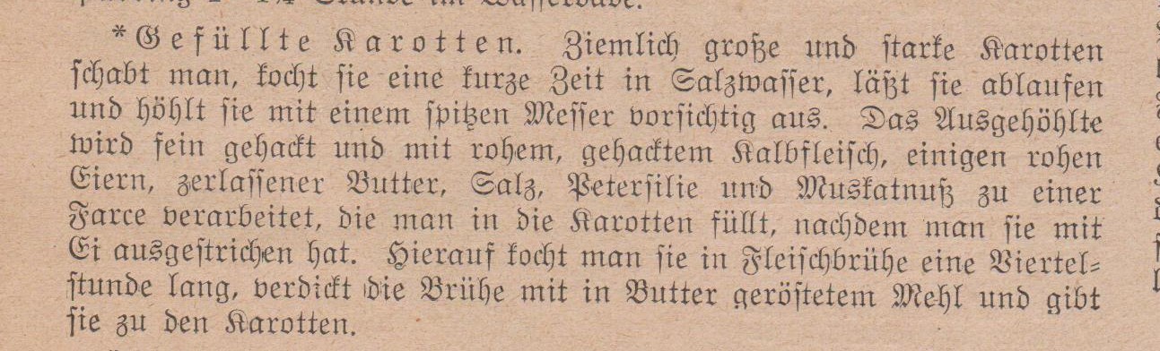 Dieses Rezept für die gefüllten Karotten stammt aus dem Jahr 1906.
