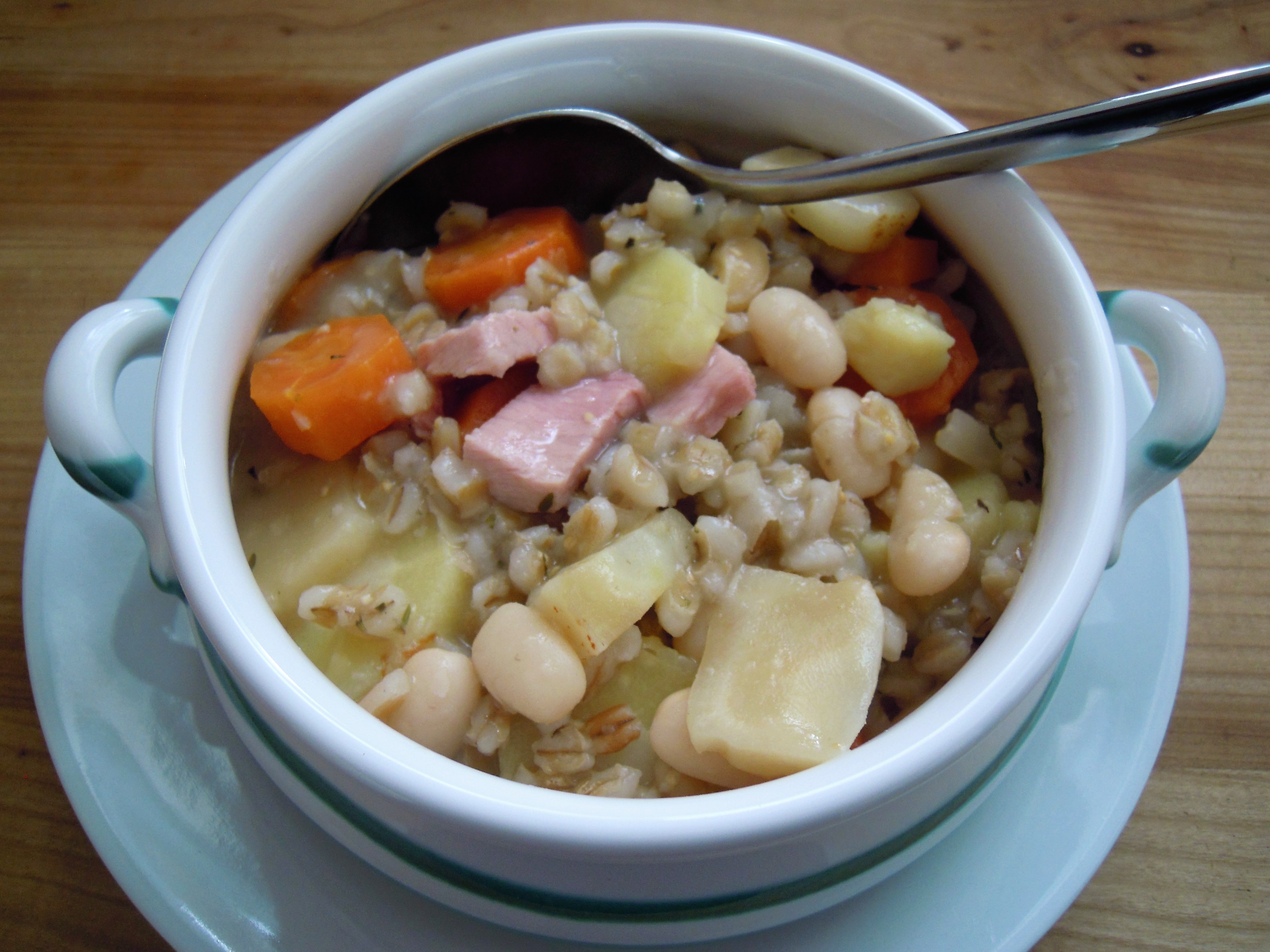 Ein deftiger, herrlicher Eintopf, der stundenlang sättigt…..mit einem Stück Schwarzbrot dazu – ein Genuss und eine vollwertige Mahlzeit!